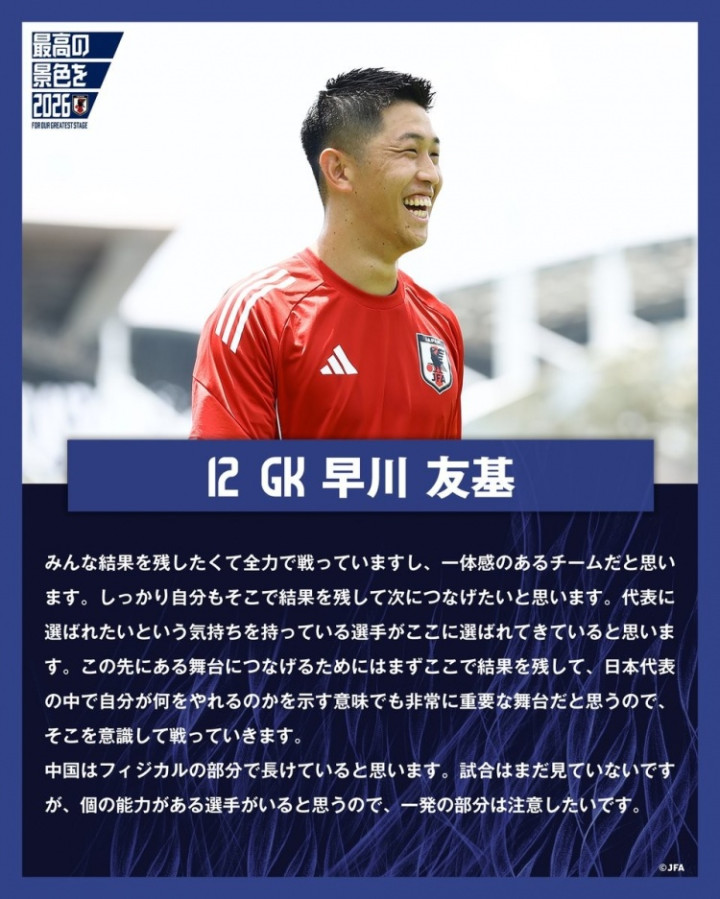 直播吧7月10日讯东亚杯第2轮,日本队将对阵中国男足。赛前,日本门将早川友基接受了媒体的采访。